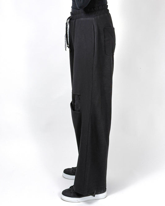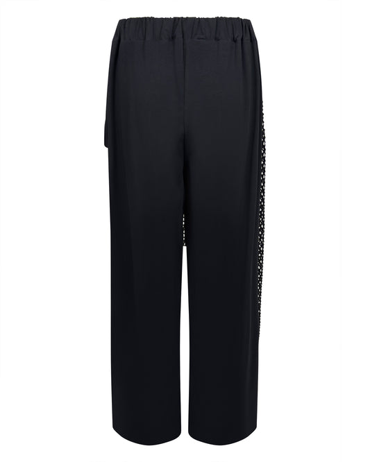 Pantaloni Largi Negri cu Suprapunere din Plasă | Talie Unică | Qarma