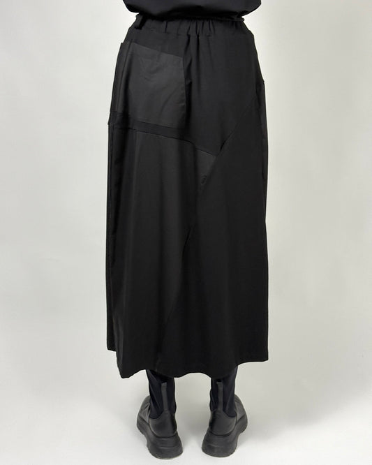 Fustă Neagră Asimetrică cu Patch-uri Texturate | Talie Unică | Qarma