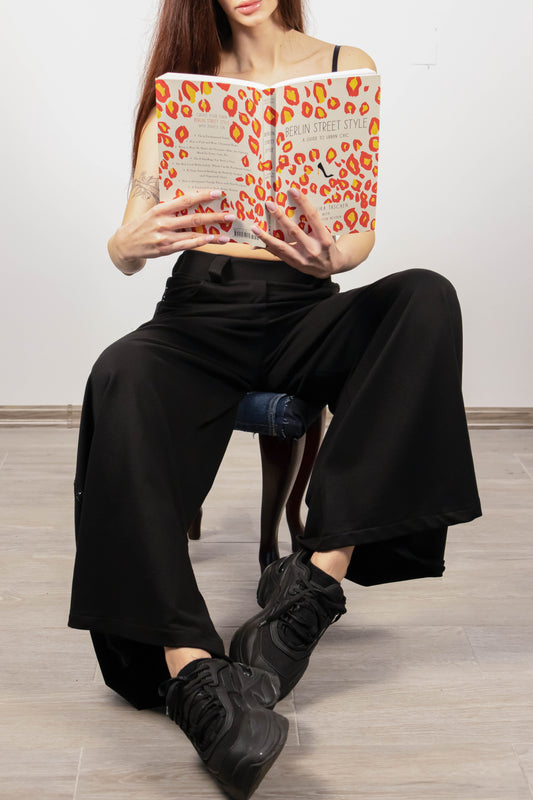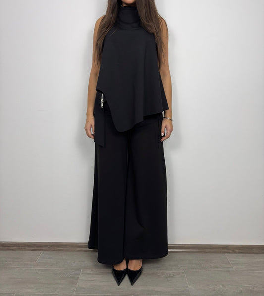 Pantaloni Negri Largi cu Decupaj Asimetric | Talie Unică | Qarma