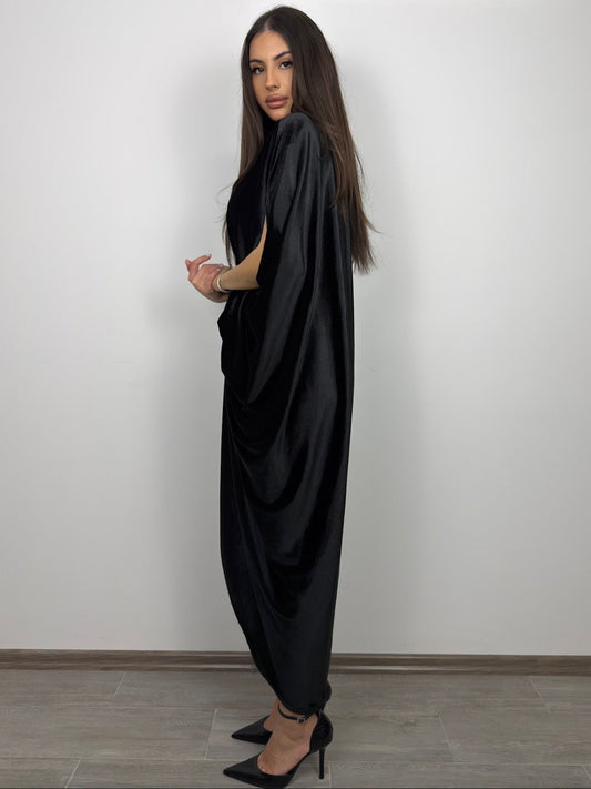 Rochie Neagră din Catifea cu Inel Central | Talie Unică | Qarma