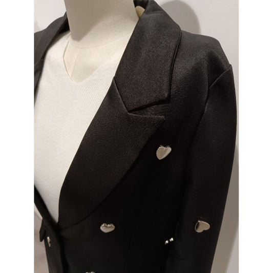 Sacou Negru Oversized cu Inimi Metalice | Fabricat în Italia | Qarma Selection