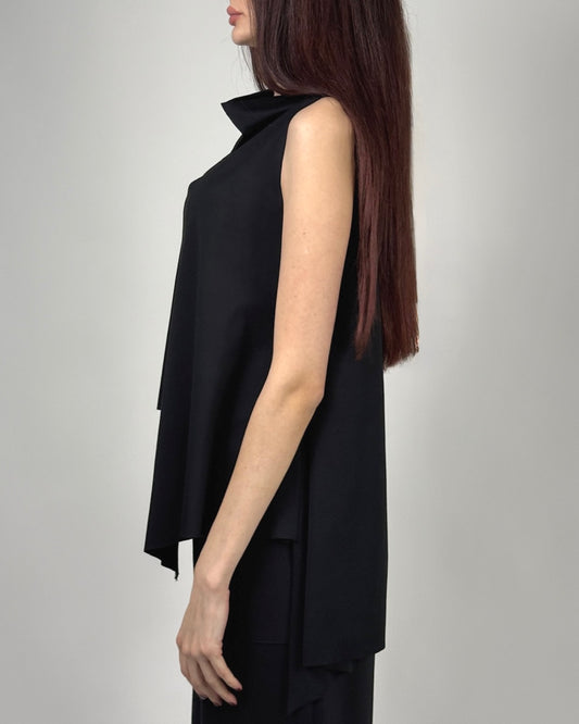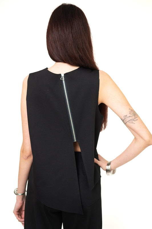 Top Negru Asimetric cu Fermoar pe Spate | Talie Unică | Qarma