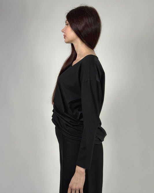 Bluză Neagră cu Fermoar Central și Drapaj | Talie Unică | Qarma