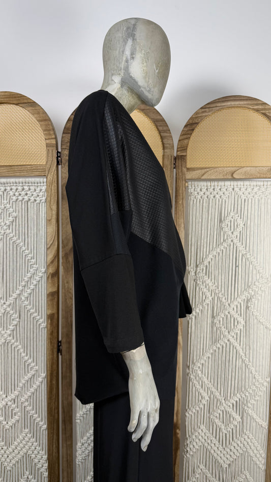 Bluză Neagră Asimetrică cu Panou Texturat | Talie Unică | Qarma