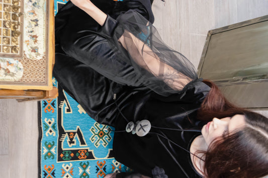 Bluză Neagră din Catifea cu Mâneci Bufante | Talie Unică | Qarma
