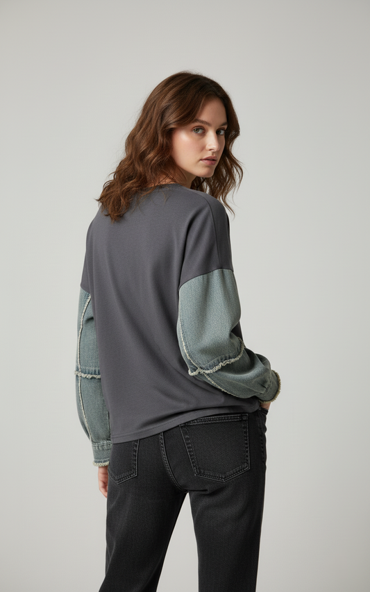 Bluză Hibrid din Bumbac cu Mâneci de Blugi | Talie Unică | Qarma Selection