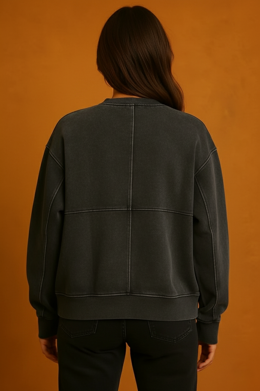 Bluză Neagră cu Buzunar Texturat și Șnur Lateral | Talie Unică | Qarma