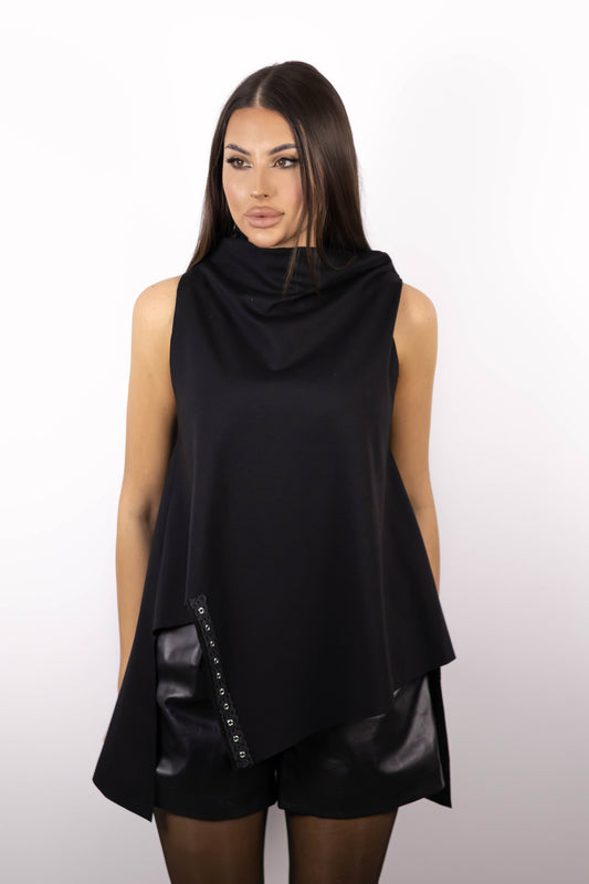 Capă Neagră Asimetrică cu Fermoar Lateral | Talie Unică | Qarma