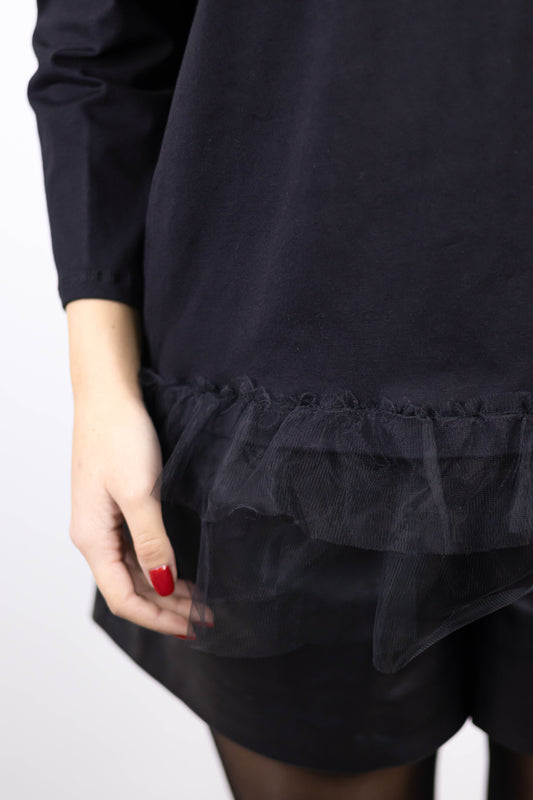 Tricou Negru Stratificat cu Tulle și Broderie | Talie Unică | Qarma