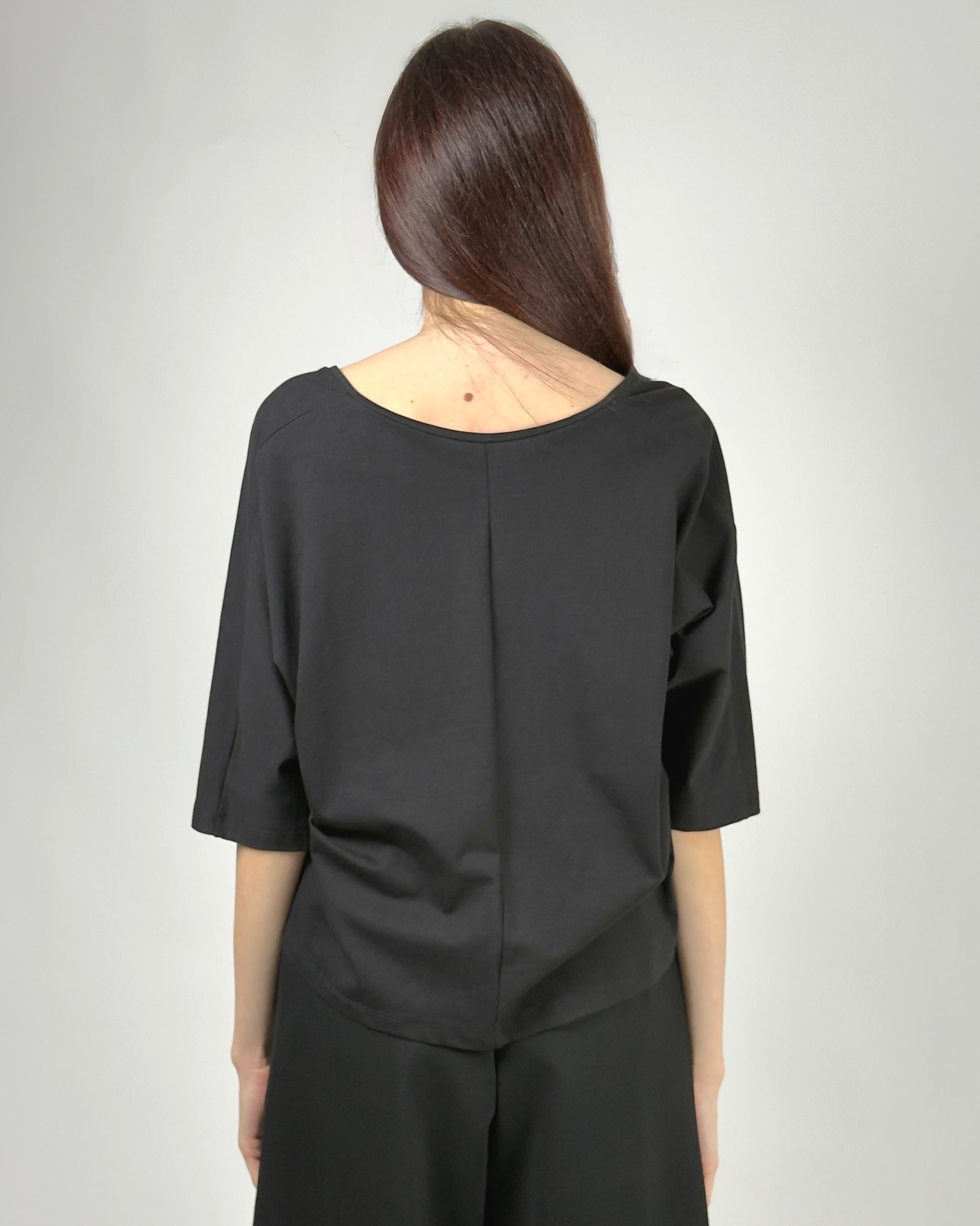 Bluză Neagră Asimetrică cu Inserție de Plasă | Talie Unică | Qarma