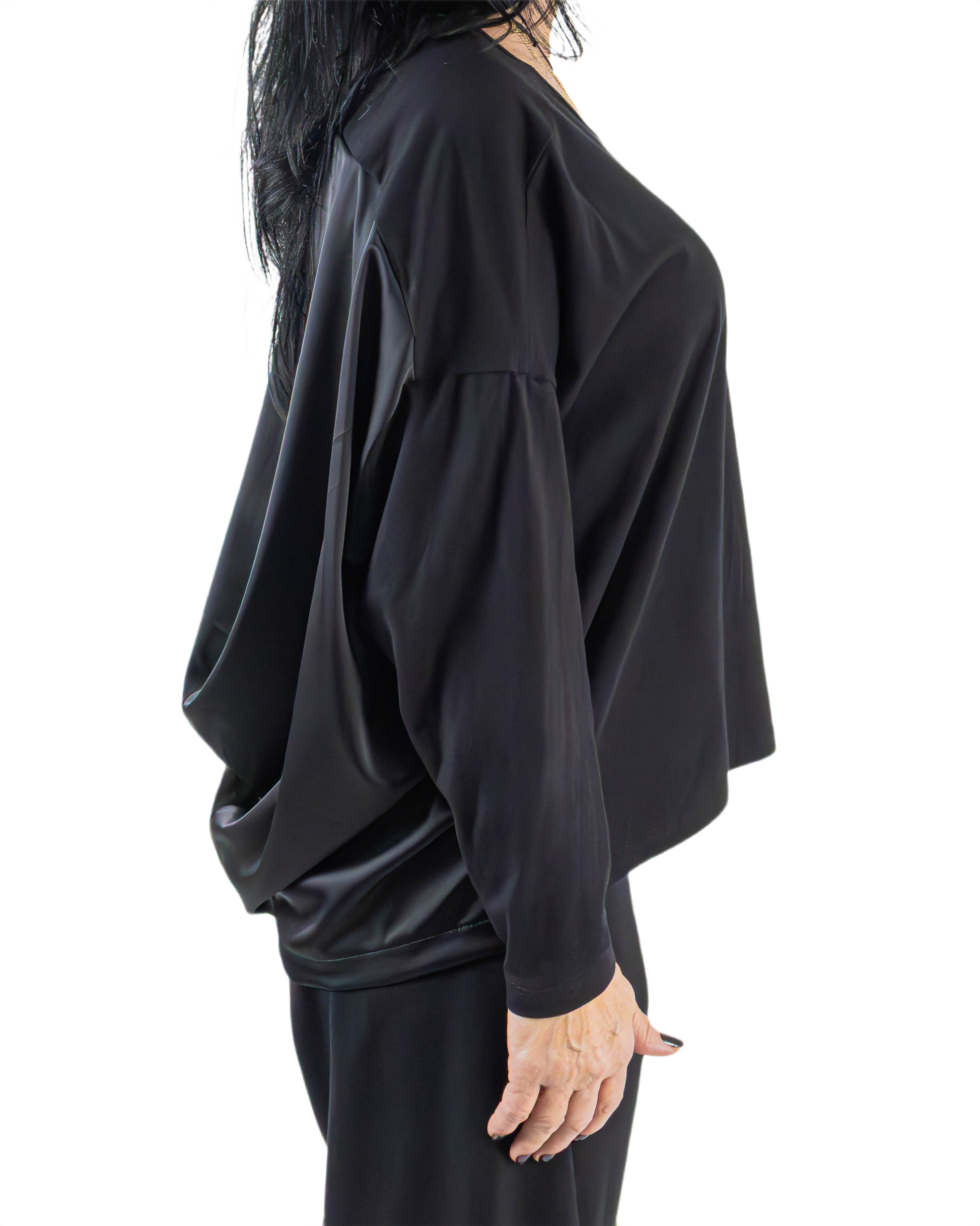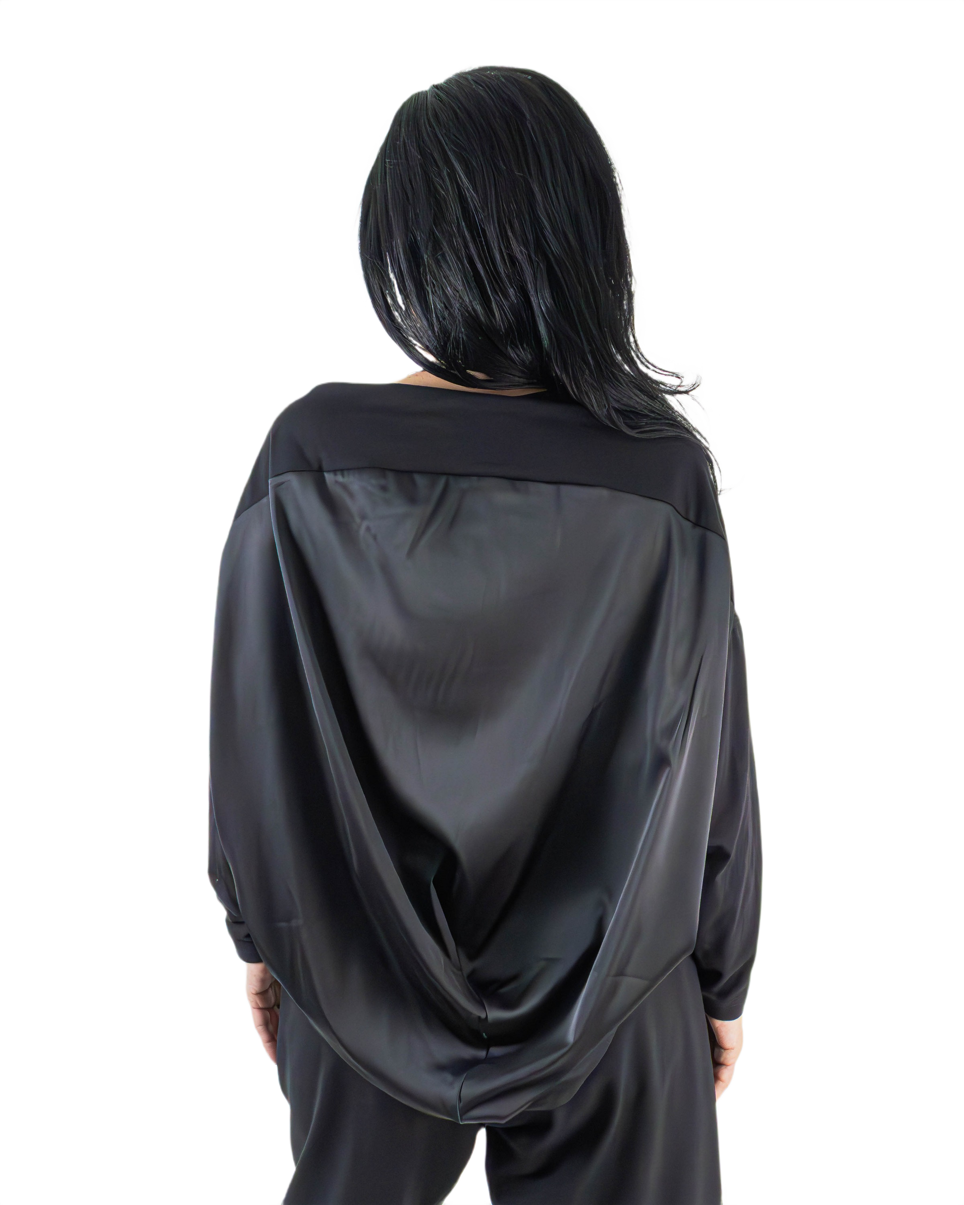 Bluză Noir cu Spate Drapat Arhitectural | Mărime Universală (S-XL) | Qarma