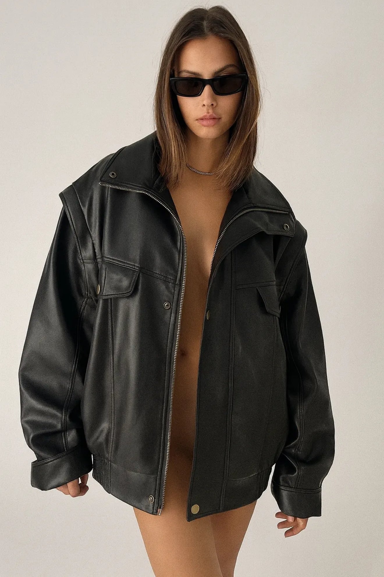 Geacă Bomber Oversized Neagră | Talie Unică | Qarma Selection
