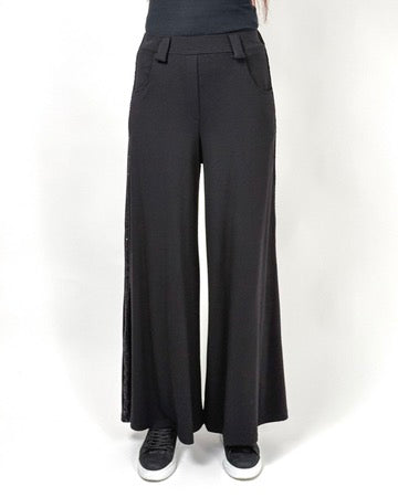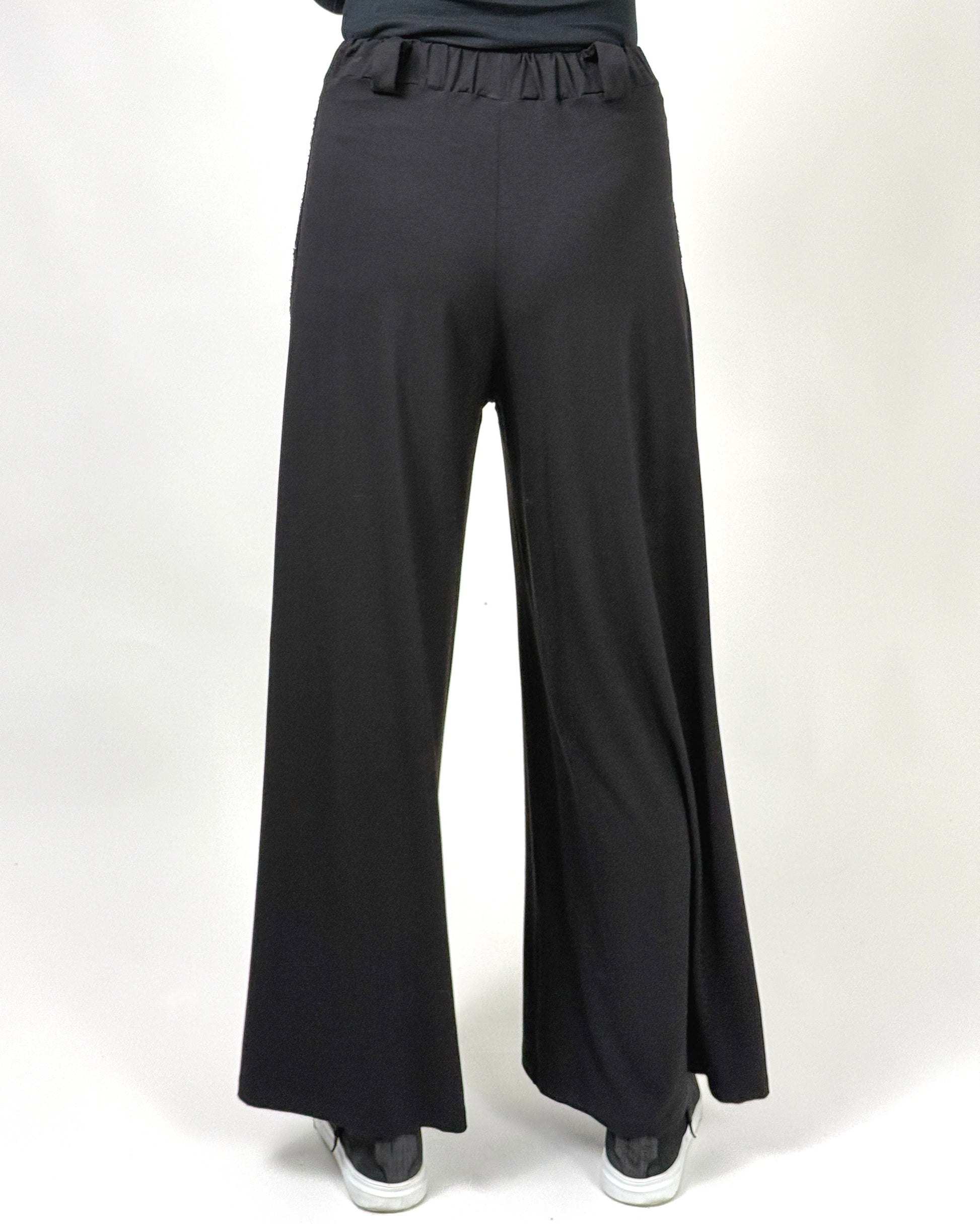 Pantaloni Largi Negri cu Vipușcă Laterală | Talie Unică | Qarma