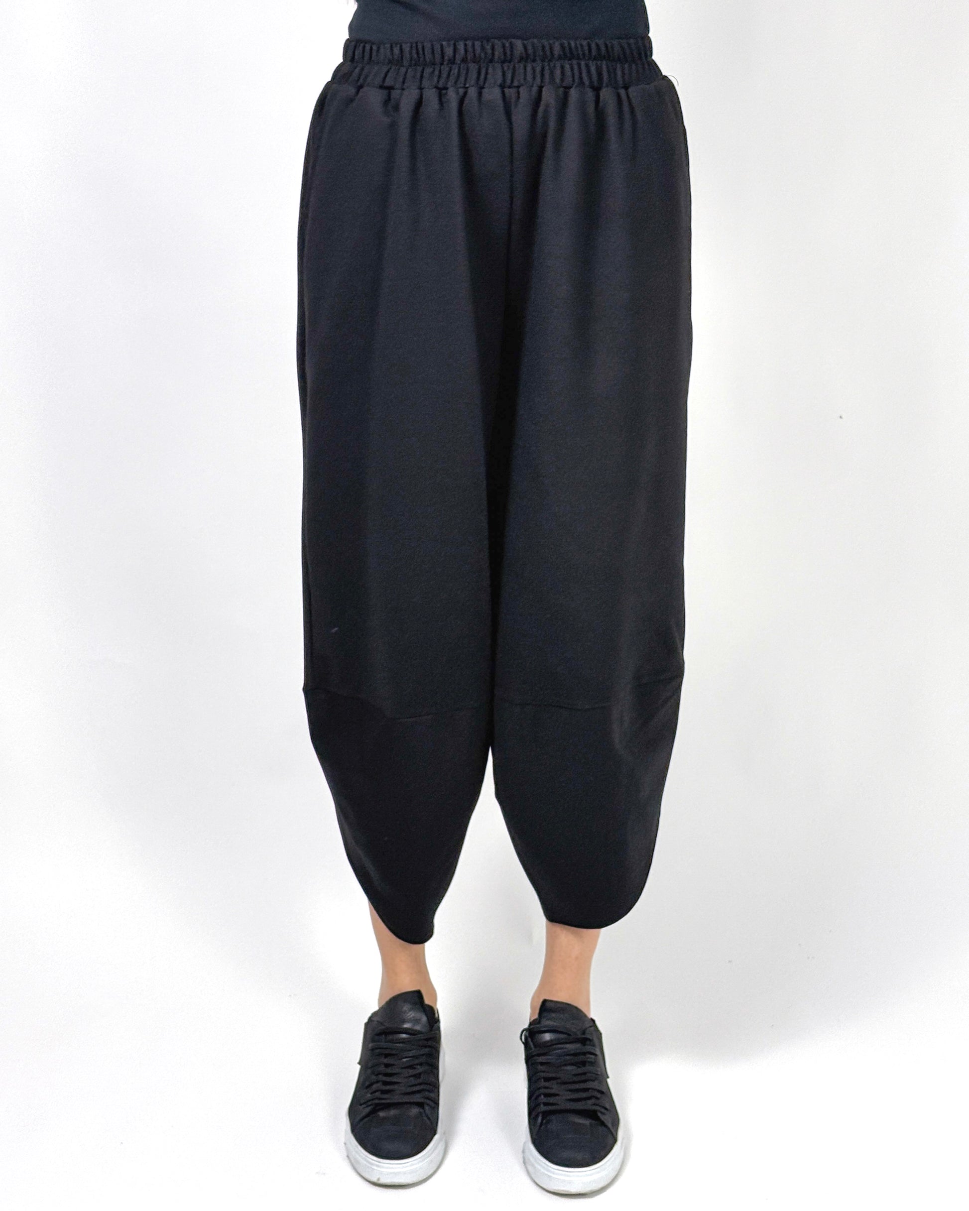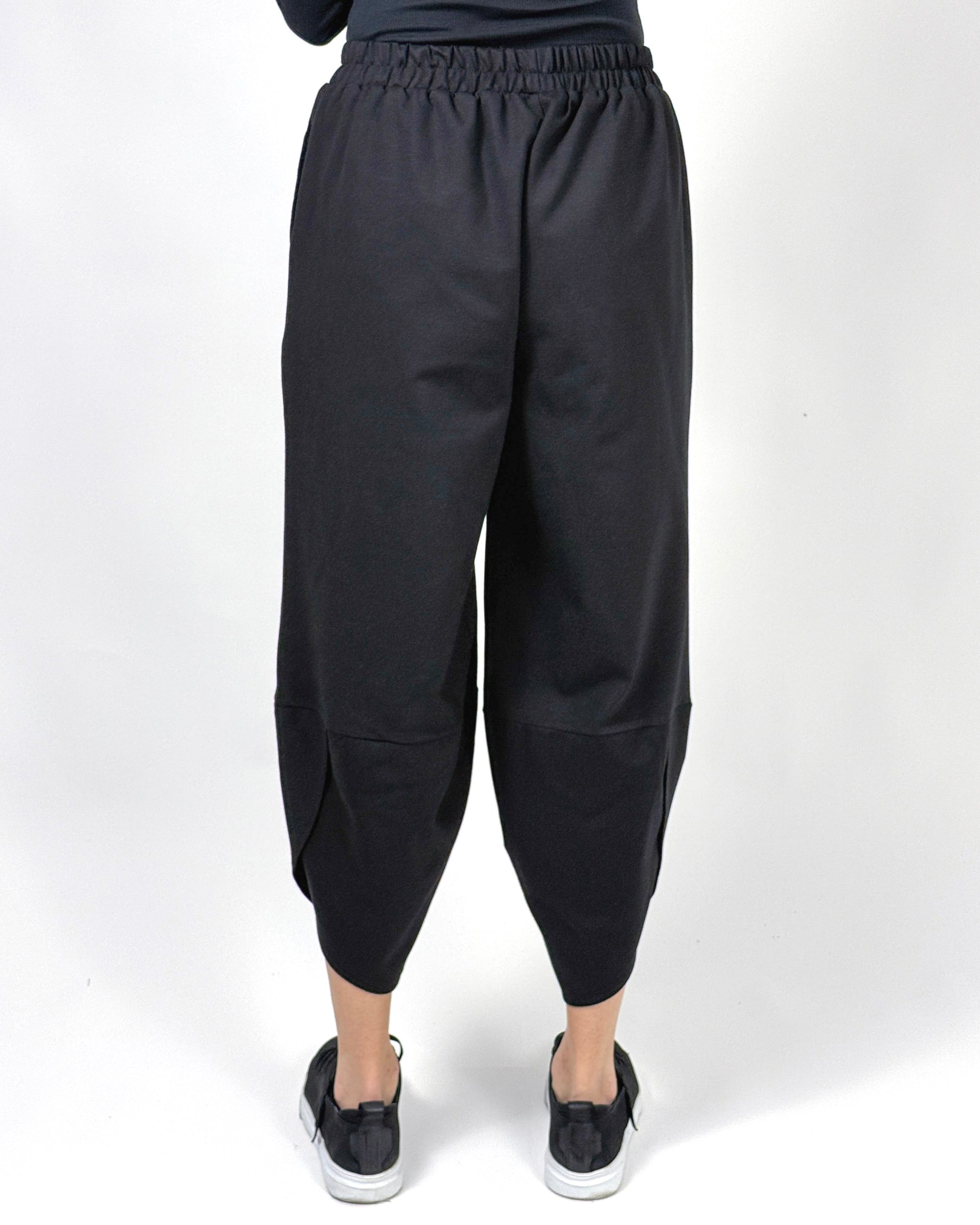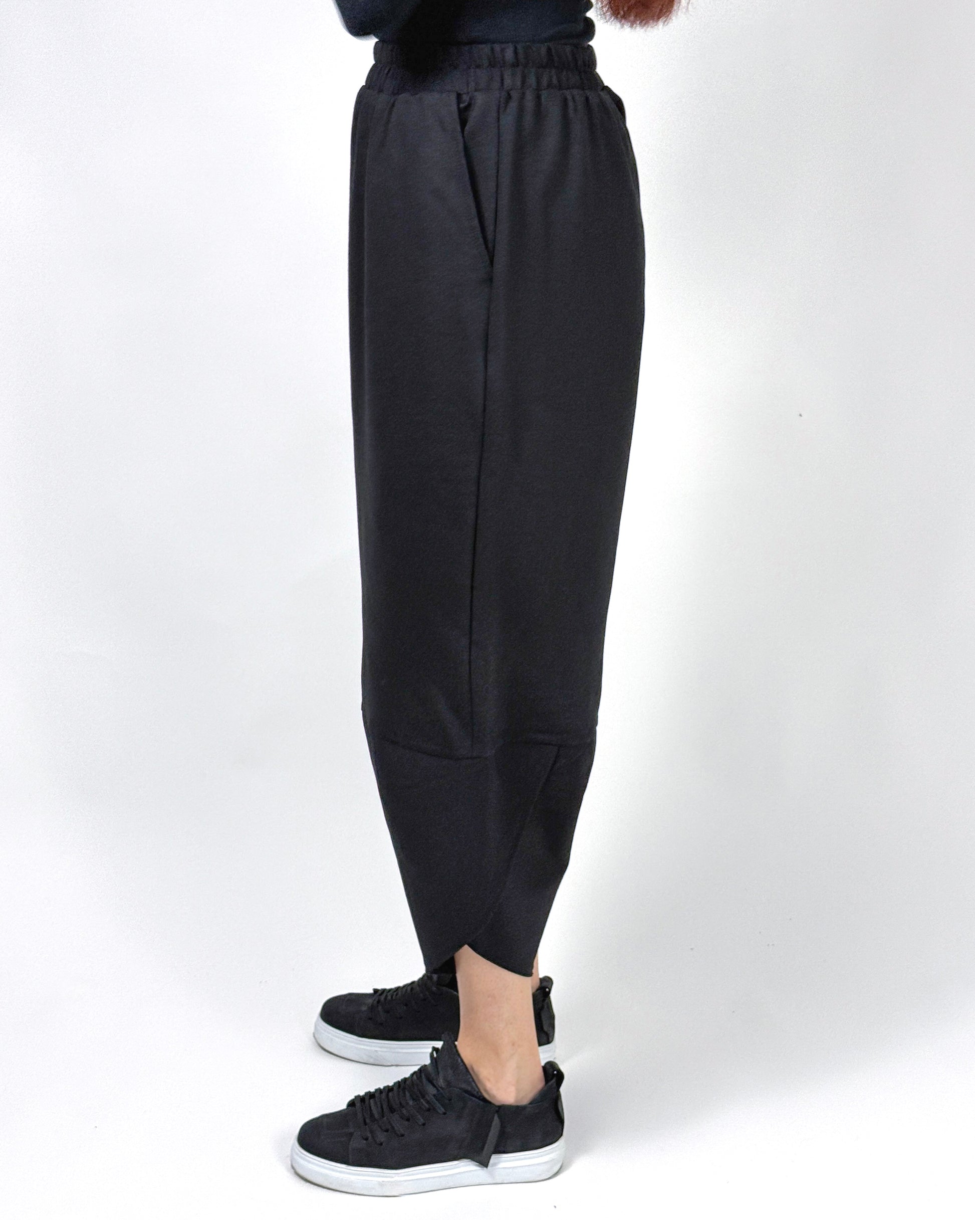 O siluetă inspirată de natură, creată pentru garderoba modernă. Acești pantaloni aduc un joc subtil de volume și linii rotunjite, redefinind confortul într-o formă artistică.